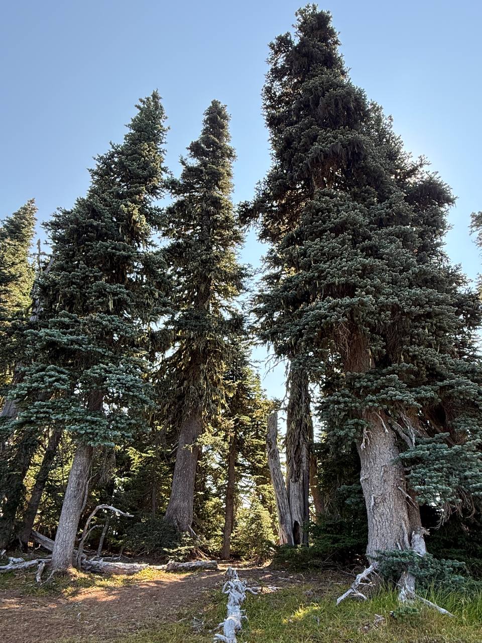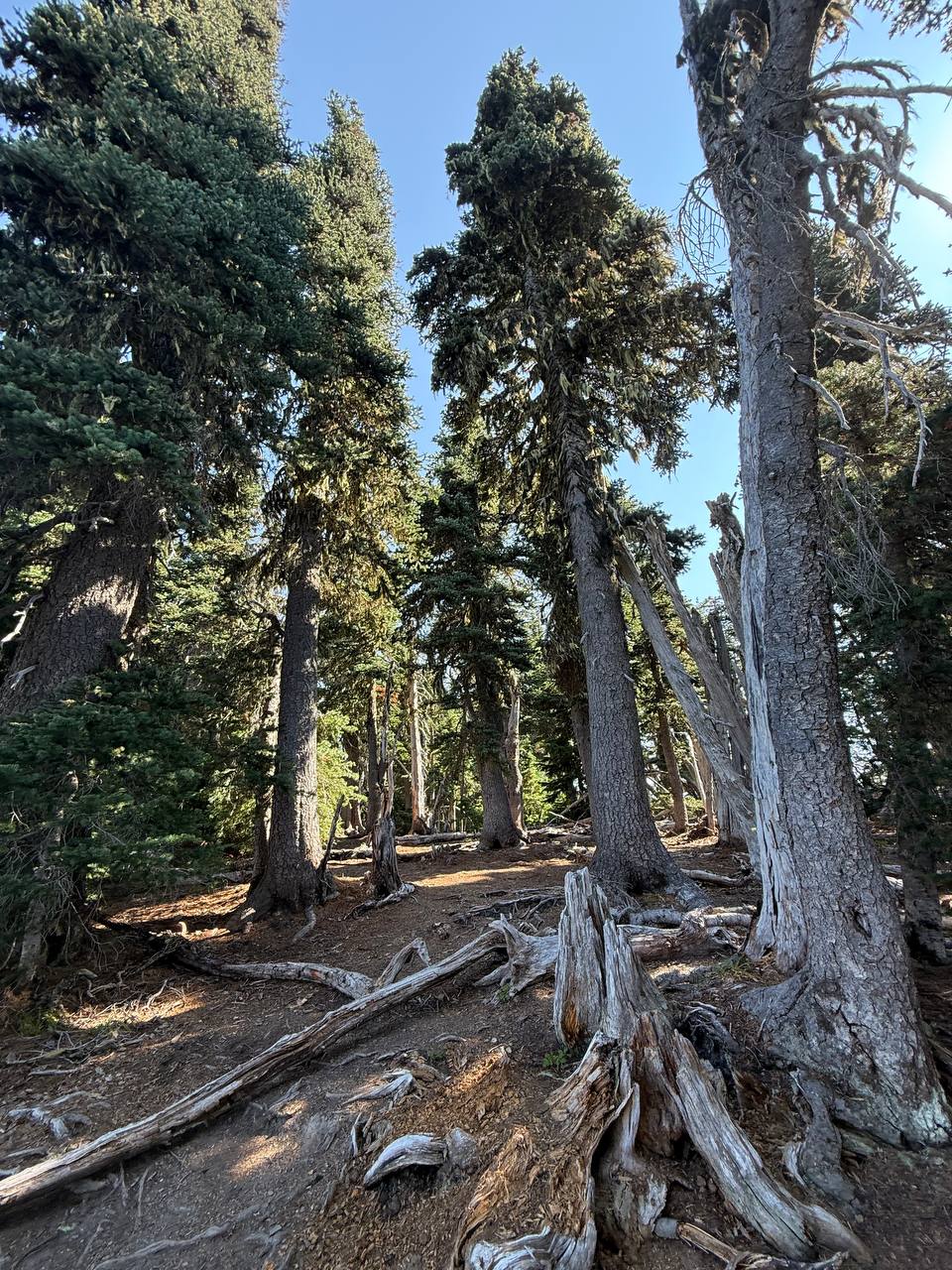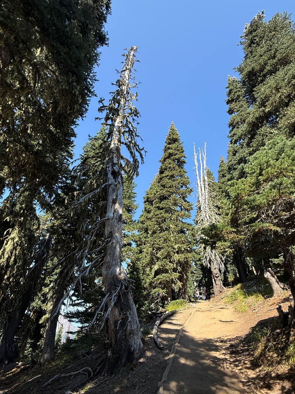 High Ridge Trail постепенно становится уже и круче, но здесь вы оказываетесь в особом «коридоре» из деревьев. Многие из них — это старые горные ели и пихты, возраст которых насчитывает более сотни лет. Их кроны закрывают небо, создавая впечатление, что вы идёте по зеленому тоннелю.