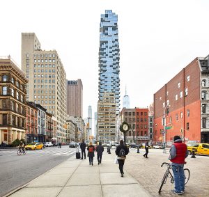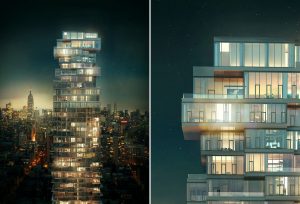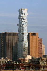 Этот «пиксельный» небоскрёб стал воплощением популярной в то время тенденции воздвижения «супертонких» небоскребов в американском Нью-Йорке.